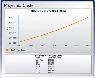 Veja tendência de custos com saúde, estimando uma empresa de 100 funcionários, sendo 25% obesos e 25% fumantes, o gráfico ao lado representa o custo de não fazer nada.